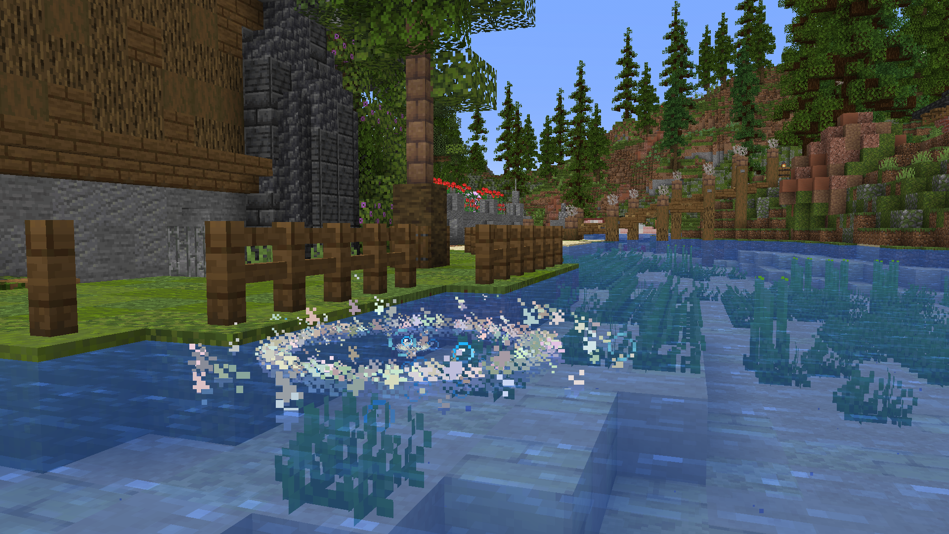 Время от времени в реках и озёрах появляются вот такие рыбные места. Чтобы место заспавнилось нужно чтобы река была натурально сгенерированной. Так же места появляются в болотах: как в обычных, так и в мангровых.